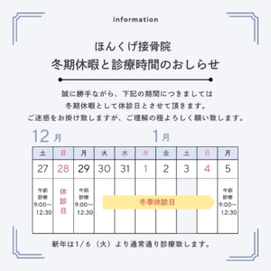12/30(火)~1/4(日)冬季休診